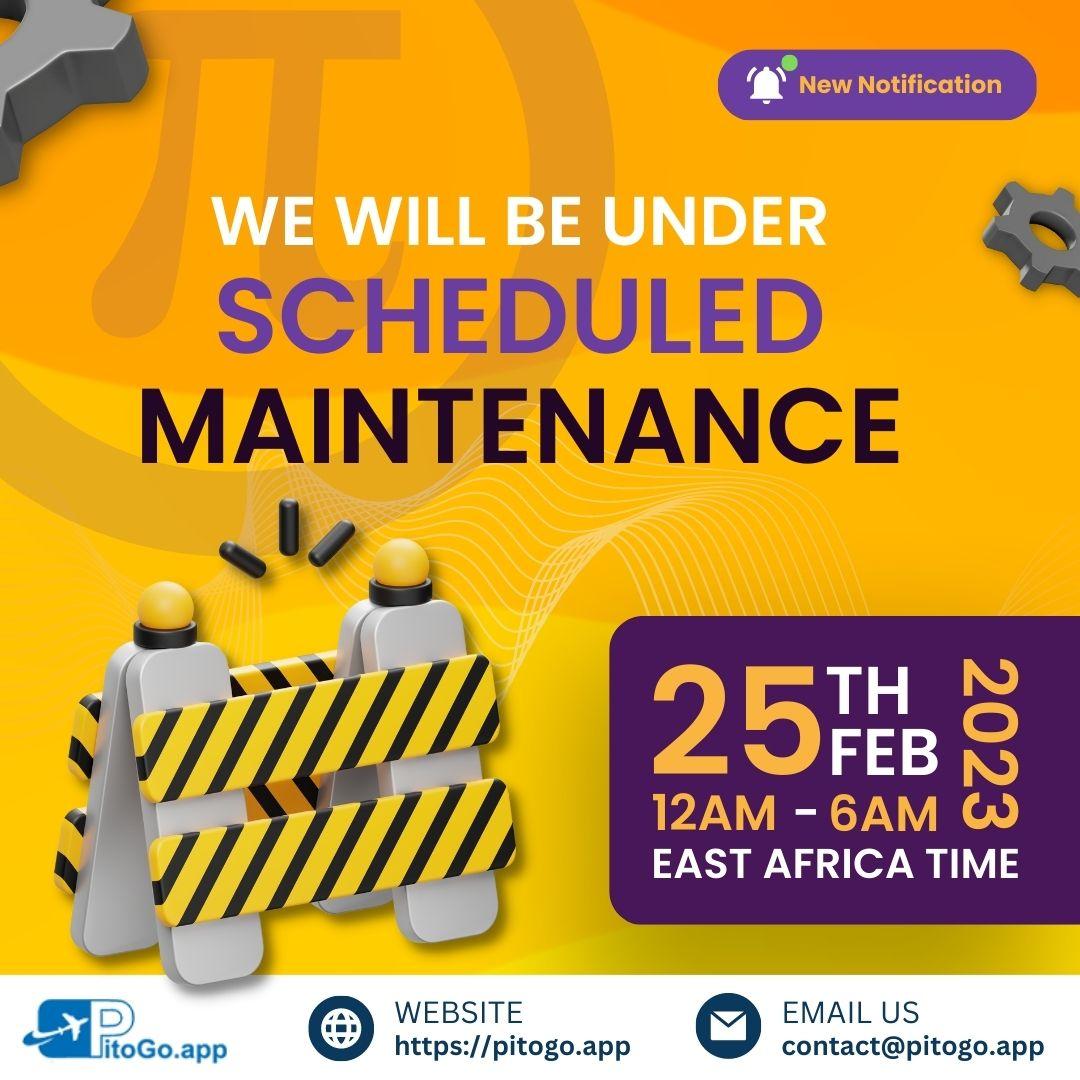 We have scheduled our platform maintenance on 25/02/2023 from 0000hrs to 0600hrs GMT+3.We have exciting updates to pioneers on pitogo platform.