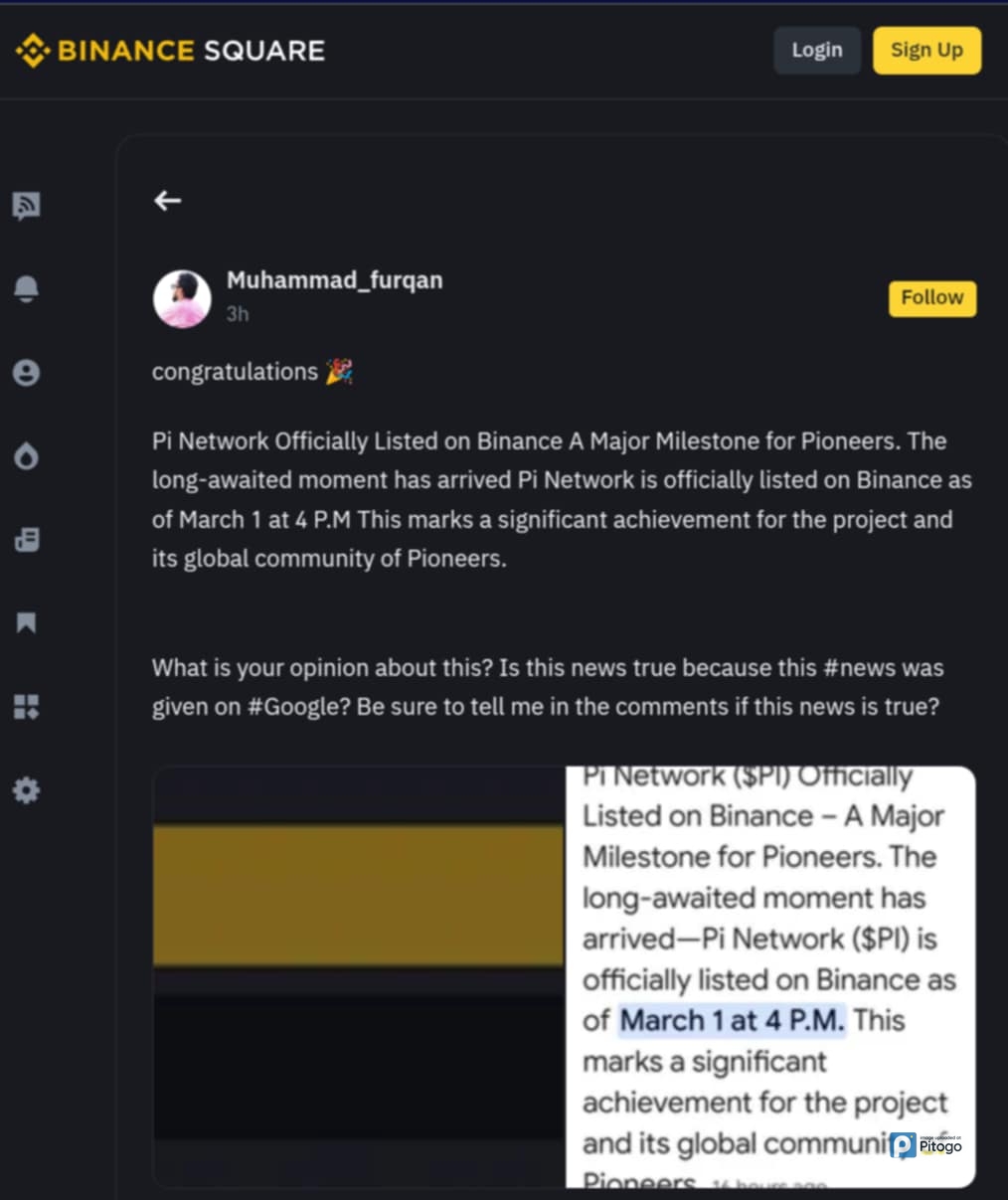 A lot of articles on Binance Square claims that #PiNetwork will be listed on Binance at 4pm UTC on March 1, 2025. Stay tuned