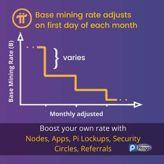 Pada tanggal 1 April 2024, tarif penambangan dasar yang baru mulai berlaku sebagai bagian dari penyesuaian bulanannya berdasarkan formula penerbitan hadiah yang dirilis pada tanggal 1 Maret 2022. Anda akan melihat tarif baru tersebut saat memulai sesi penambangan baru pertama Anda di bulan tersebut. Tingkatkan tingkat penambangan individu Anda melalui beragam kontribusi, termasuk Penguncian Pi, penggunaan Aplikasi, operasi