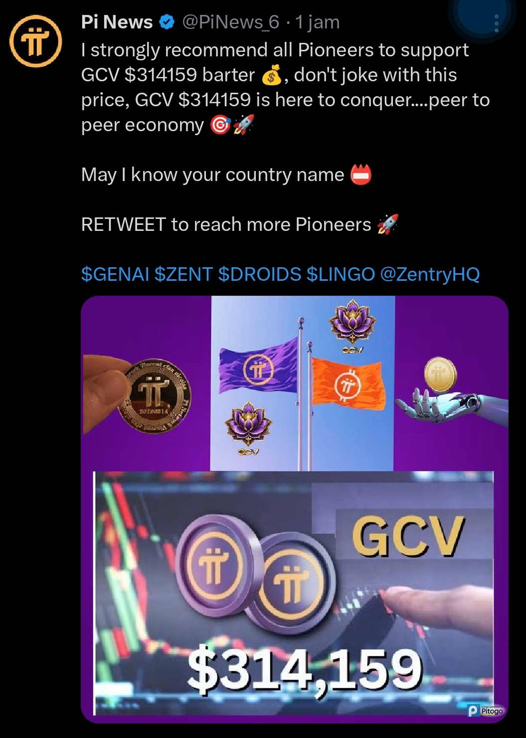 Millions of Pioneers around the world do not know how to access Xplatform, and do not care about the exchange. For them, the most important thing is that $Pi has been used to buy goods for daily life, and they are happy with the GCV $314159.